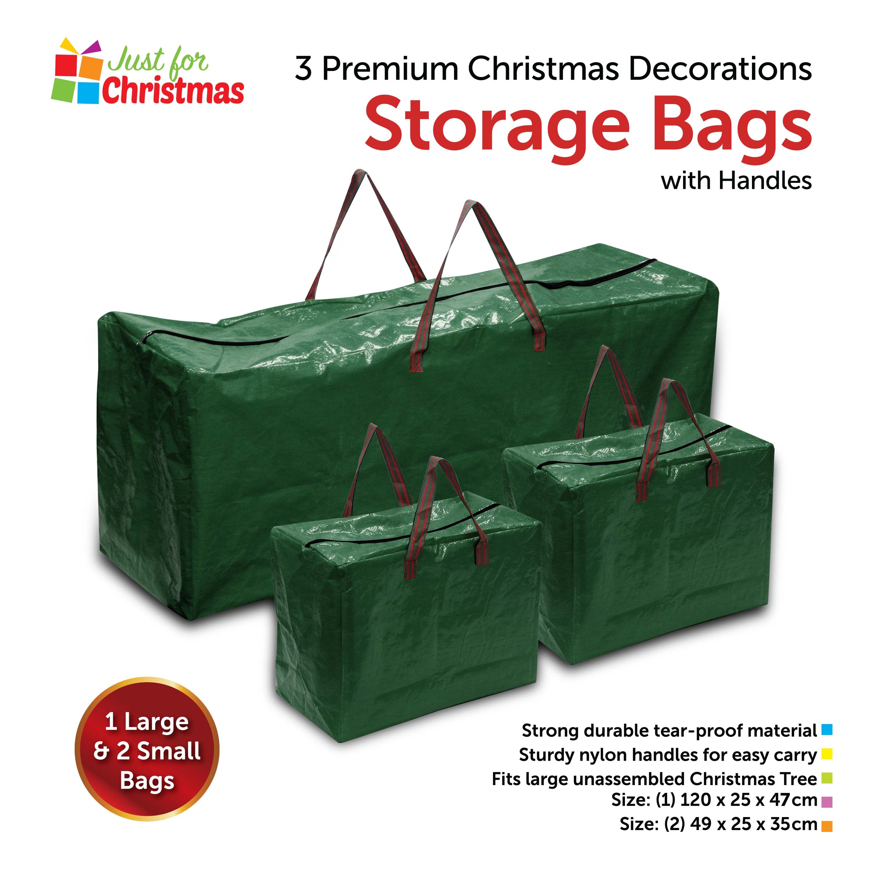 3 Premium Christmas Decorations Storage Bags with Handles